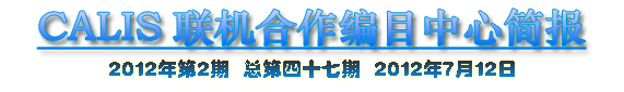 | | | 反映联编中心最新进展,包括会议、培训、编目业务、数据统计等。每年出版6期,单月15日发行。2003-2006同时有书面版,2007年开始只发行电子版。 | | |